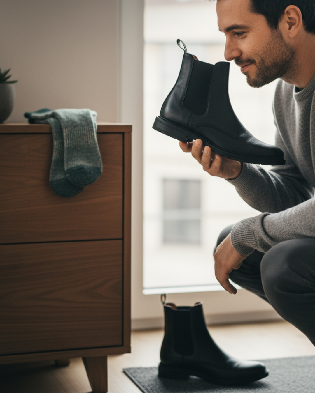 Nous fabriquons des chaussettes techniques en laine mérinos pour les urbains qui refusent de choisir entre style et performance. Nos chaussettes gardent vos pieds au sec 12h, éliminent les odeurs naturellement, et rentrent parfaitement dans vos Chelsea boots sans déformer la ligne.