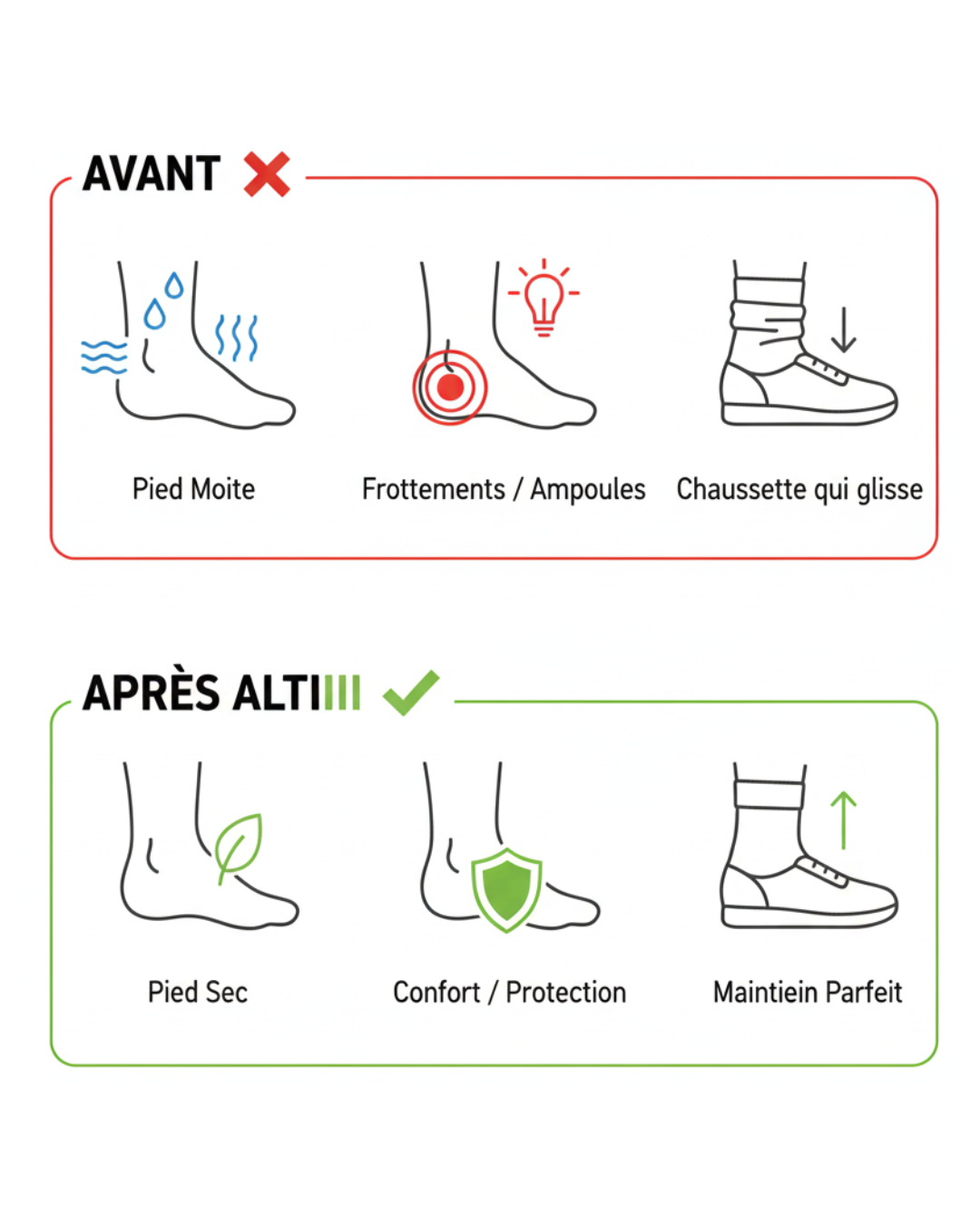 Fini la sensation moite à 15h. Fini le frottement au talon. Fini la chaussette qui glisse.